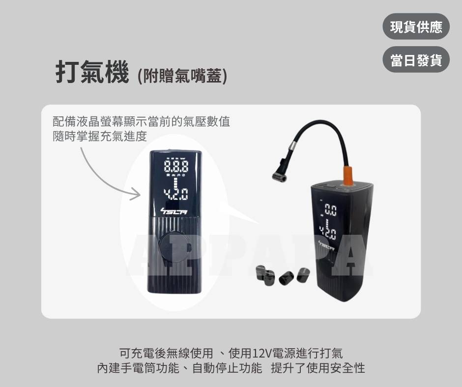 • 內建手電筒功能,在夜間或昏暗場所的情況下進行打氣作業能更清楚看到操作界面和充氣物品,讓使用更加方便安全。